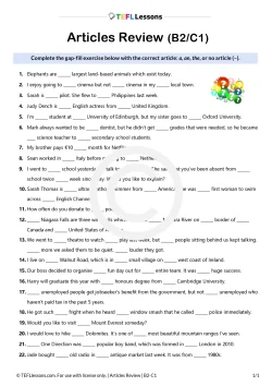 This resource is best suited for B2 to C1-level learners looking to consolidate and review article usage in a manageable, focused way. The exercise typically takes 20 minutes or more, making it ideal for a short classroom activity, homework assignment, or online practice.