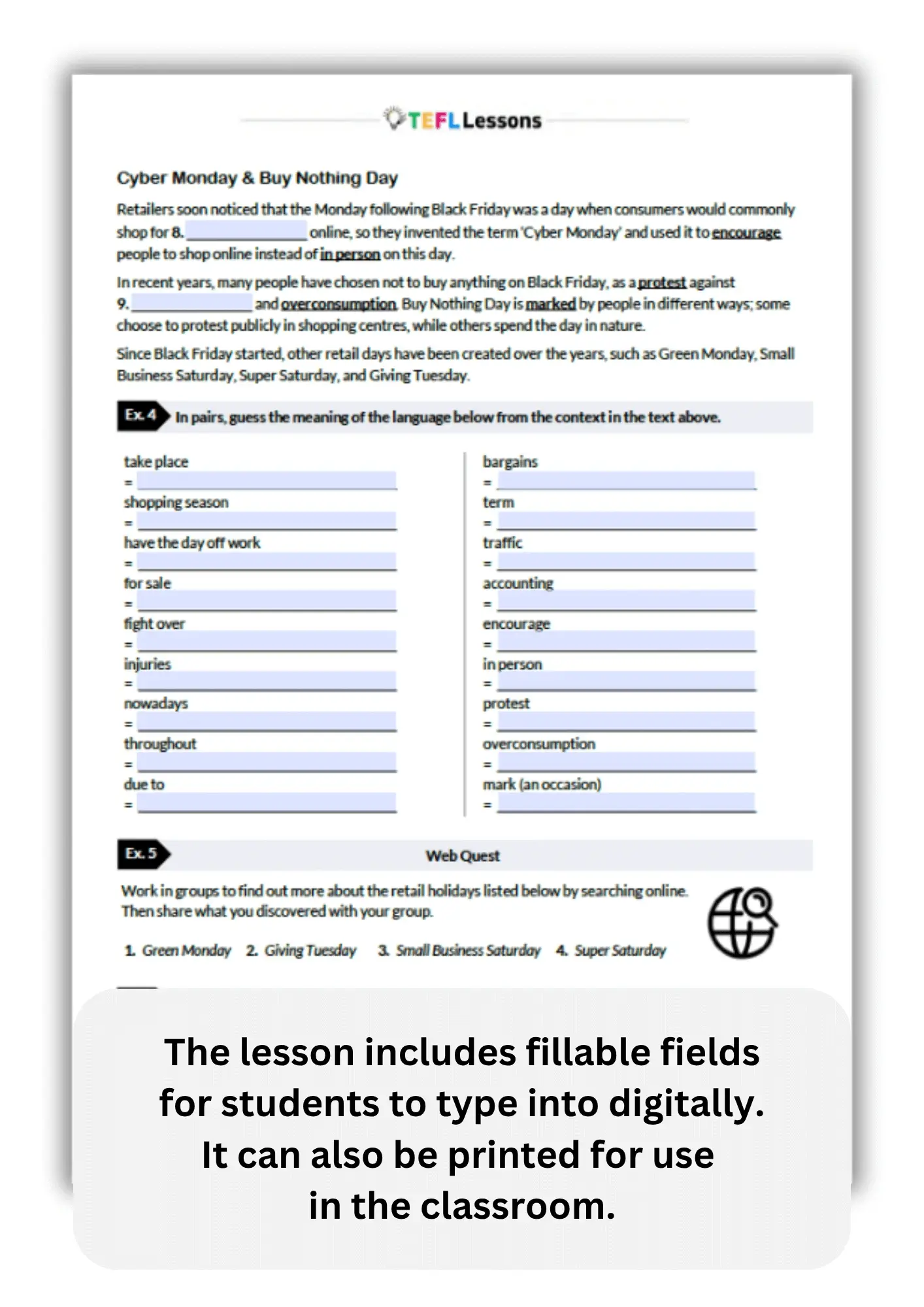 somdn_product_pageBring the excitement of the shopping season into your classroom with this Black Friday ESL lesson.
