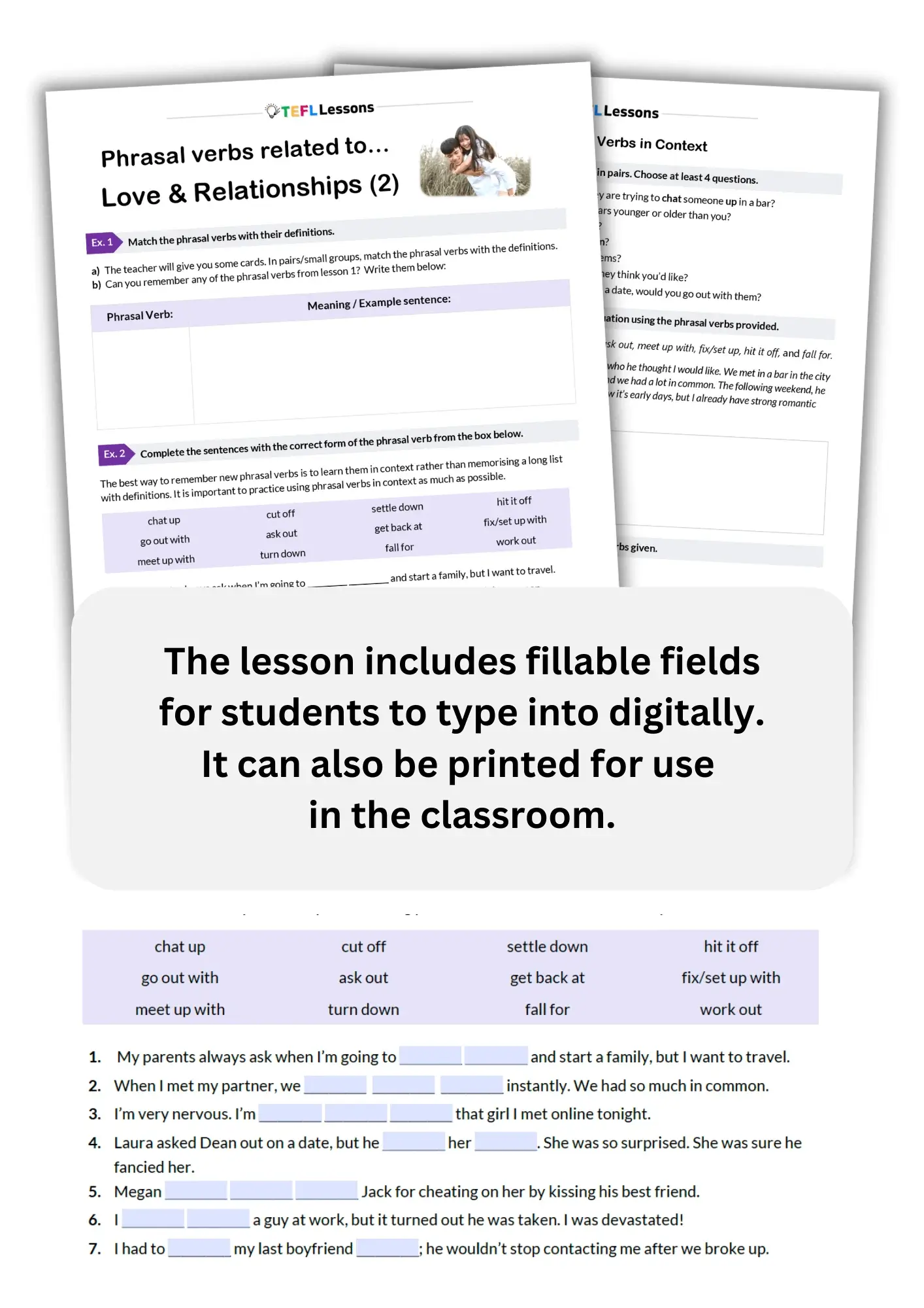 Try this love phrasal verbs practice lesson in class today!