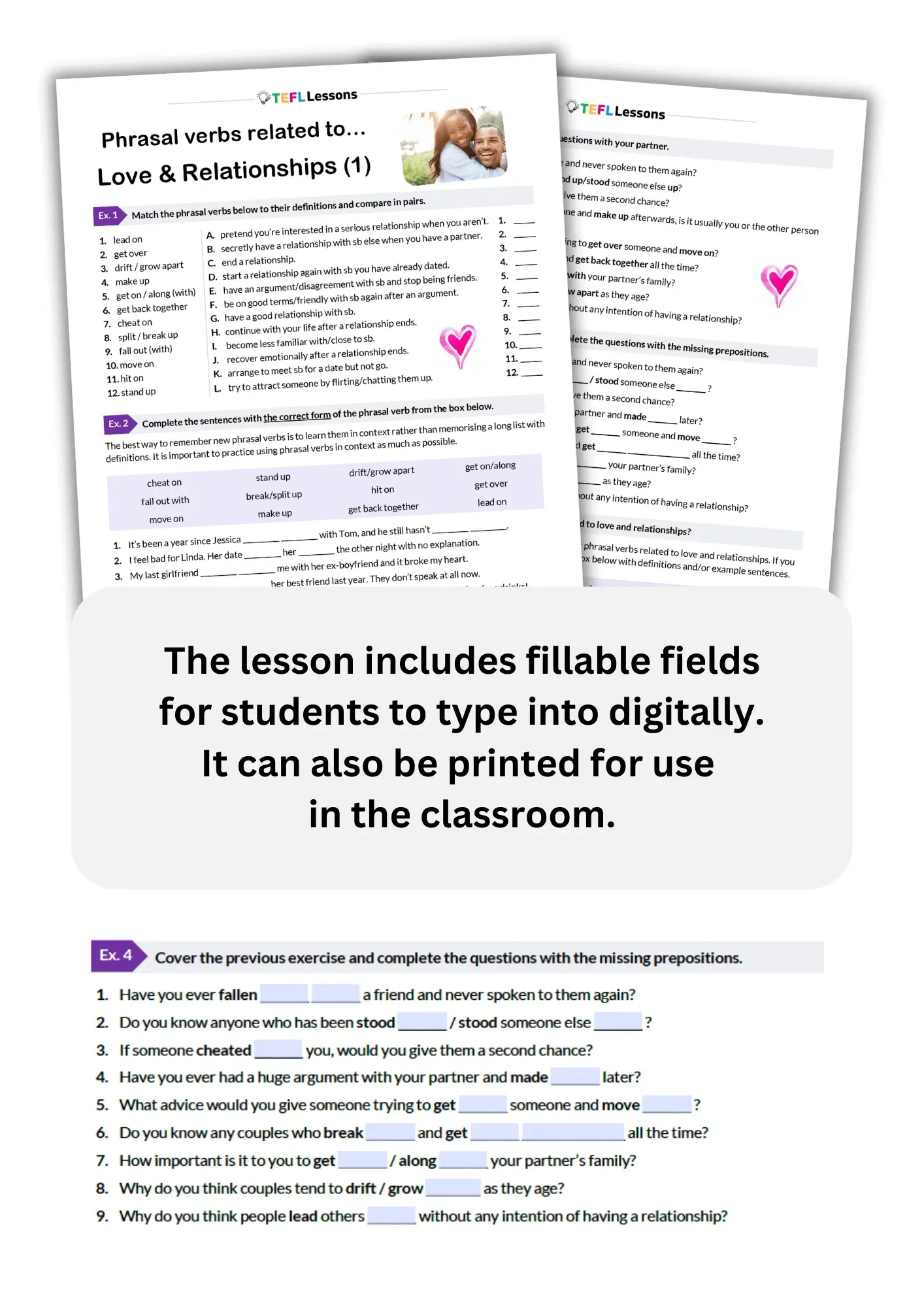 somdn_product_pageThis free ESL lesson focuses on relationships phrasal verbs, including common love phrasal verbs used to talk about dating and everyday relationship situations.
