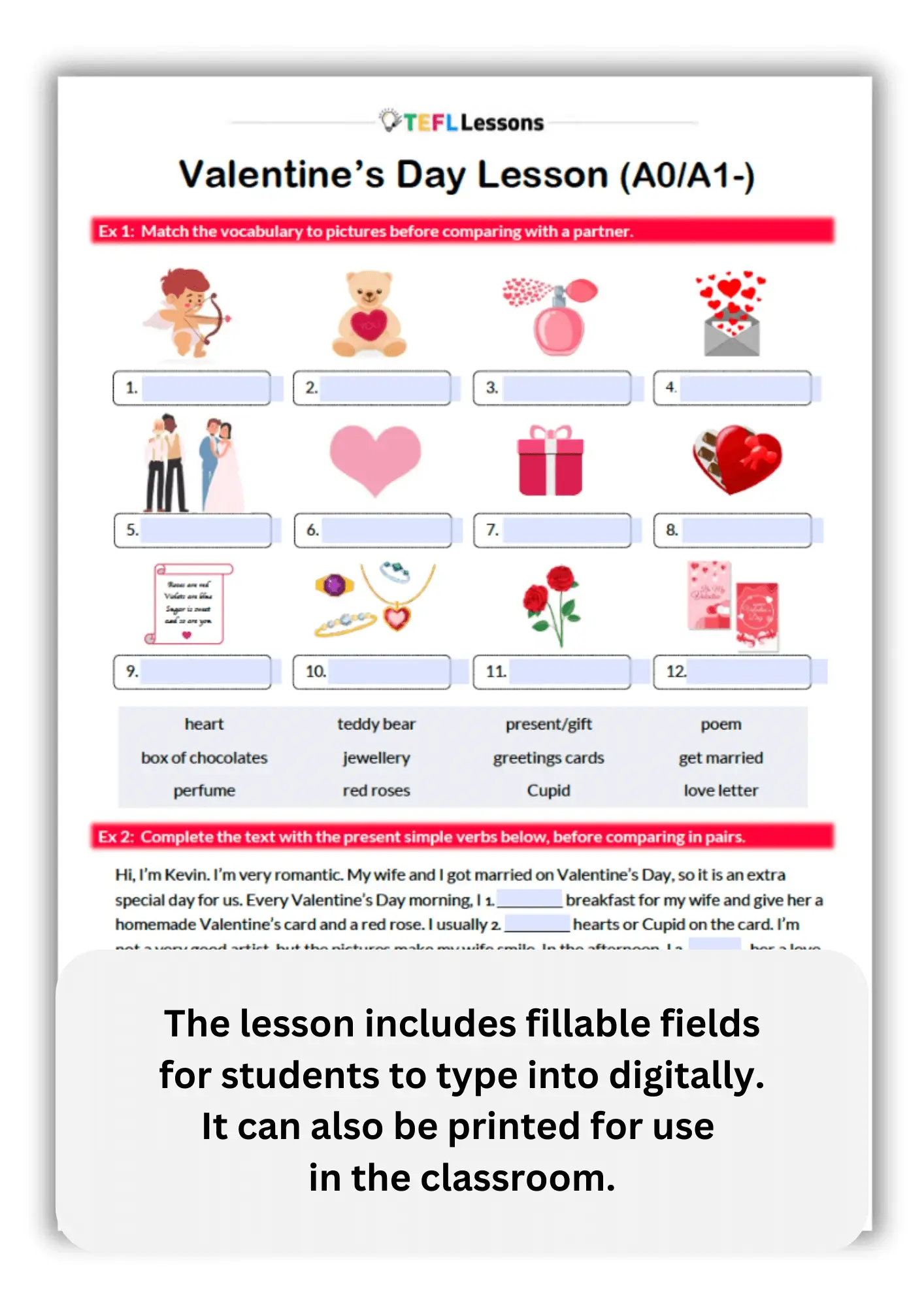 somdn_product_pageThis free Valentine’s Day vocabulary worksheet is designed for A0–A1 ESL learners and introduces basic Valentine’s Day vocabulary through clear visuals and simple language.
